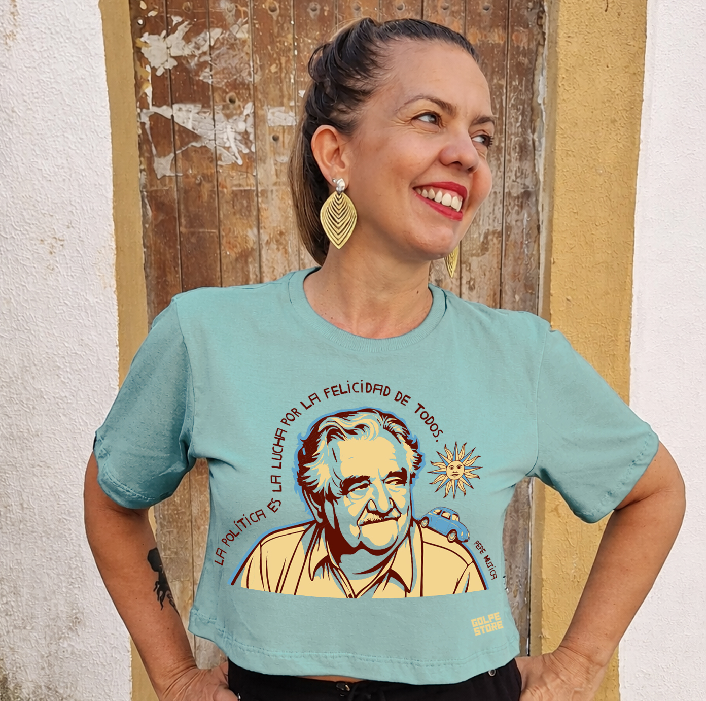 Homenagem da Golpe Store ao eterno José "Pepe" Mujica, um dos líderes mais inspiradores da América Latina. Nesta estampa, sua imagem emblemática, seu inseparável Fusca e o sol da bandeira do Uruguai se unem para representar sua trajetória de luta, humildade e compromisso com o povo.