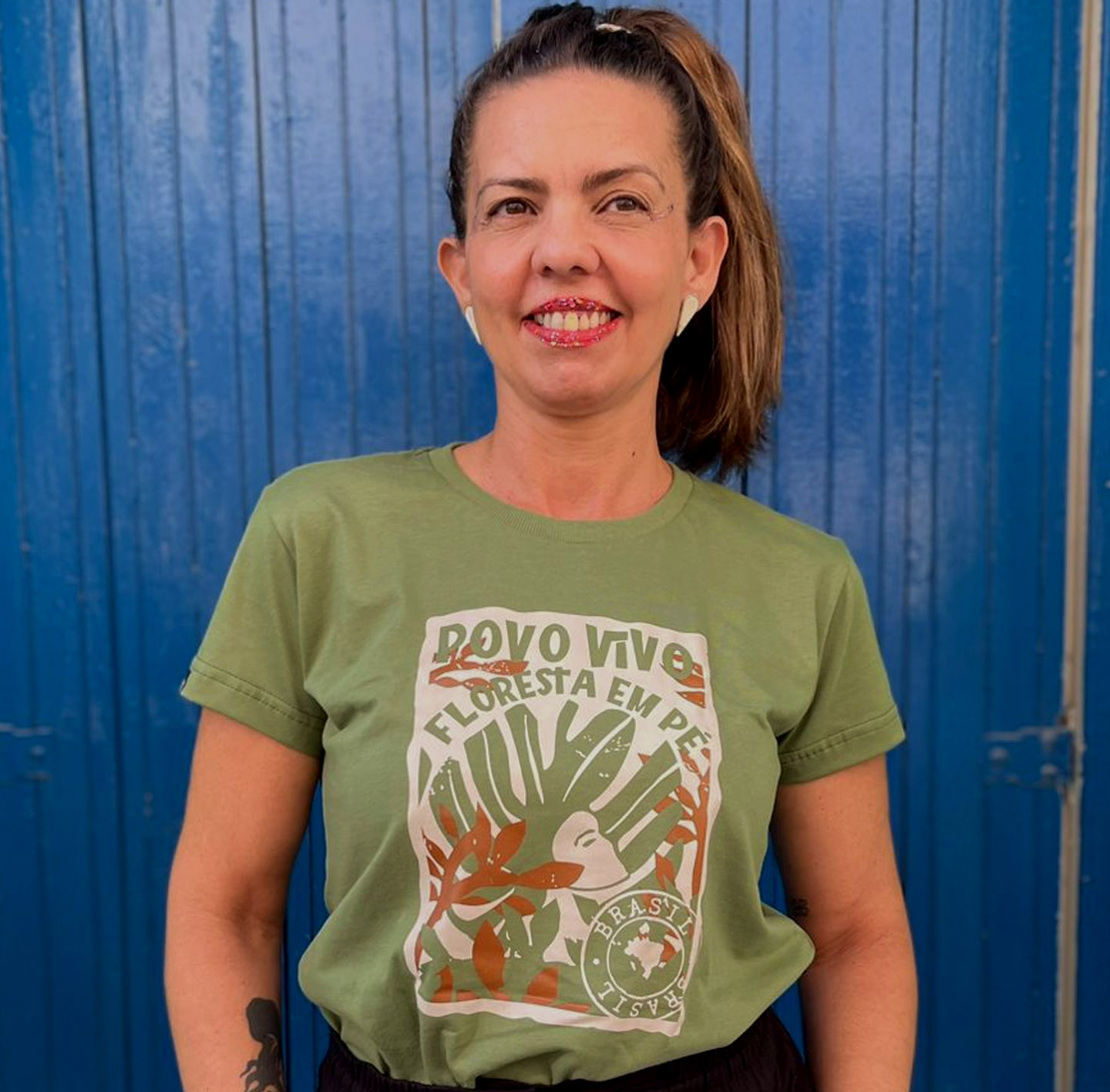 Inspirada nas lutas em defesa dos nossos povos originários brasileiros e em defesa do meio ambiente, a nova estampa da Golpe Store foi inspirada na frase de Divina Lopes, diretora do MST Nacional, que argumentou em audiência pública que o que precisamos urgente é defender a floresta Amazônica e manter o seu povo vivo.